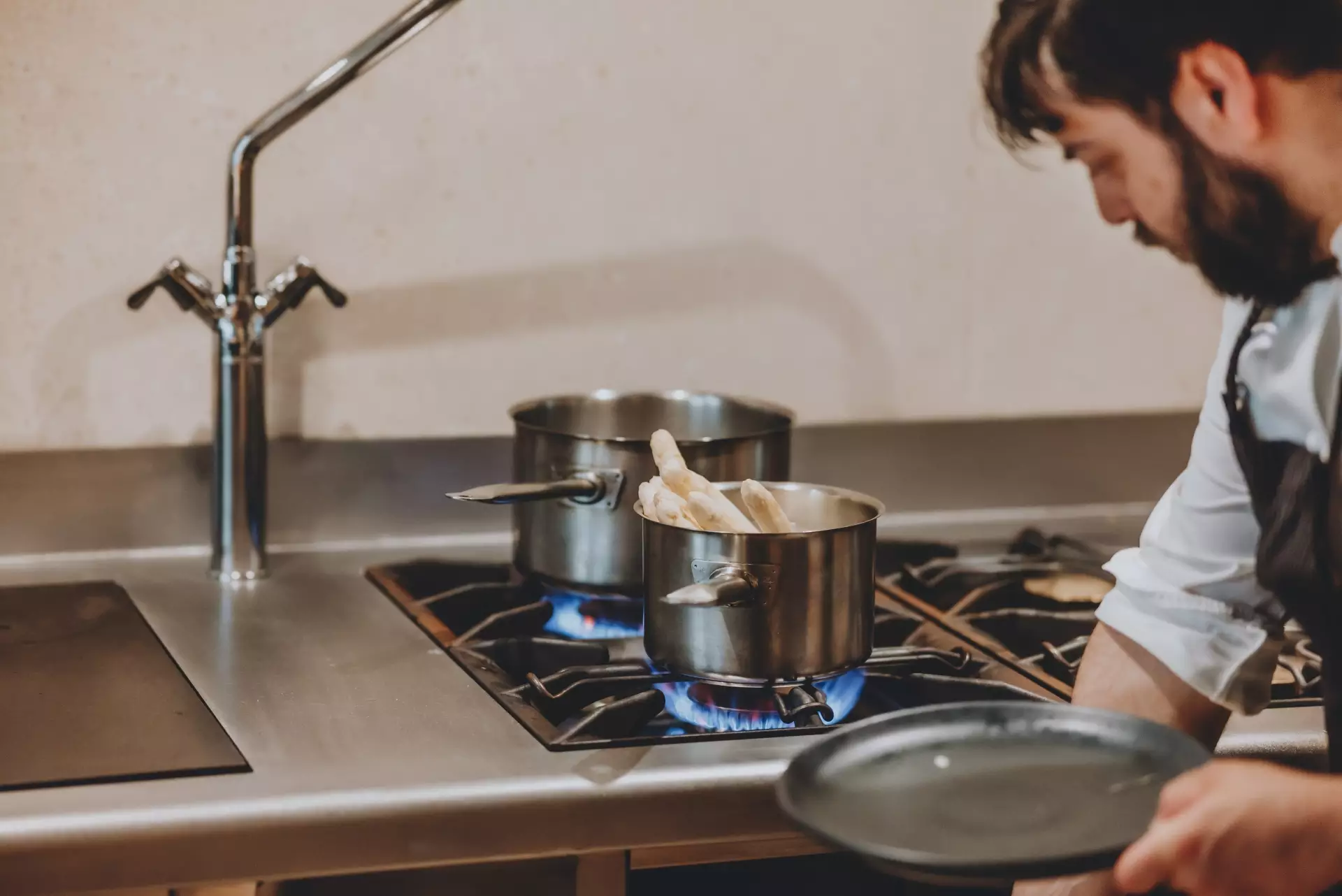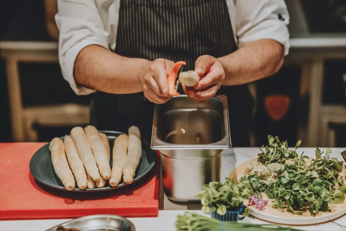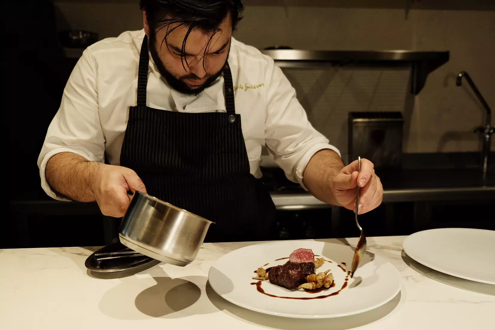 Alberte Gutiérrez es un cocinero que entiende la gastronomía como un acto de verdad. Formado en la prestigiosa escuela Hofmann de Barcelona y curtido junto a referentes como Santi Santamaría o Martín Berasategui, regresó a Vigo para construir un proyecto profundamente personal: un restaurante en el que la emoción, el territorio y el respeto por el producto gallego marcan cada decisión.